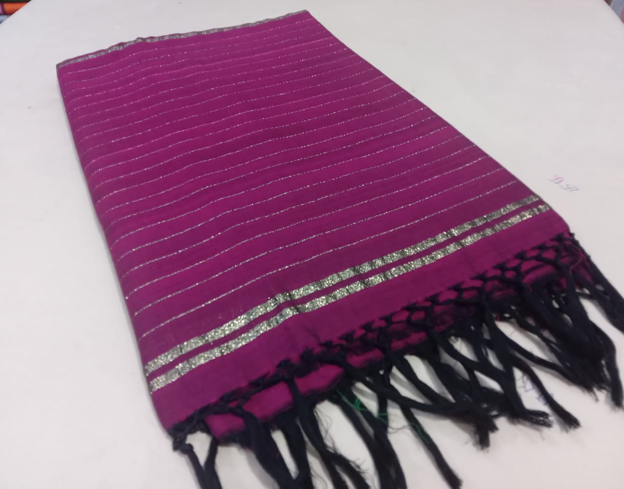 This Blue and Dark Purple saree is crafted in cotton. Light weight, Trendy and eye catching Handloom saree comes with Blouse piece. The blouse in this picture is for photo purpose only.